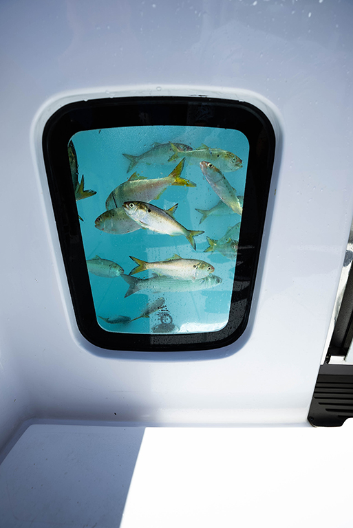 Additionally, having a boat like the Open 352 makes landing this many fish at once much easier. The large rear cockpit area provides ample space in the instance of 3 fish on the deck, 4 grown men trying to wrangle them and two pesky cameramen trying to record the action. There's also some great perks to this boat such as spot-locking capabilities, ample rod storage and two large pressurized livewells that make fishing much easier. Then for those days like this one where you've got 4-foot seas, the Seakeeper 3 saves you. Jeff was especially appreciative of the Seakeeper because he was really pushing the limits by coming on this trip just a few weeks after having knee replacement surgery.