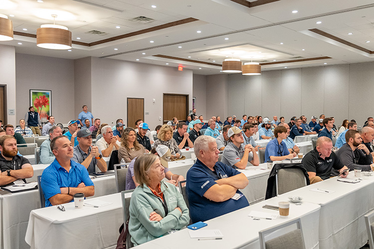 Monday morning we gathered for sales presentations delivered by our incredibly knowledgeable staff at Sportsman. The team delivers messages about the current sales market, how previous shows and events went, sales strategy to better represent the brand, marketing and new marketing strategies, the Sportsman design and build process, and lastly where Sportsman plans to move going into model year 2025. Once completed we got to hear great messages from our partners, Yamaha, Mercury, Garmin Seakeeper Ride, Seakeeper and Yamaha Financial Services.