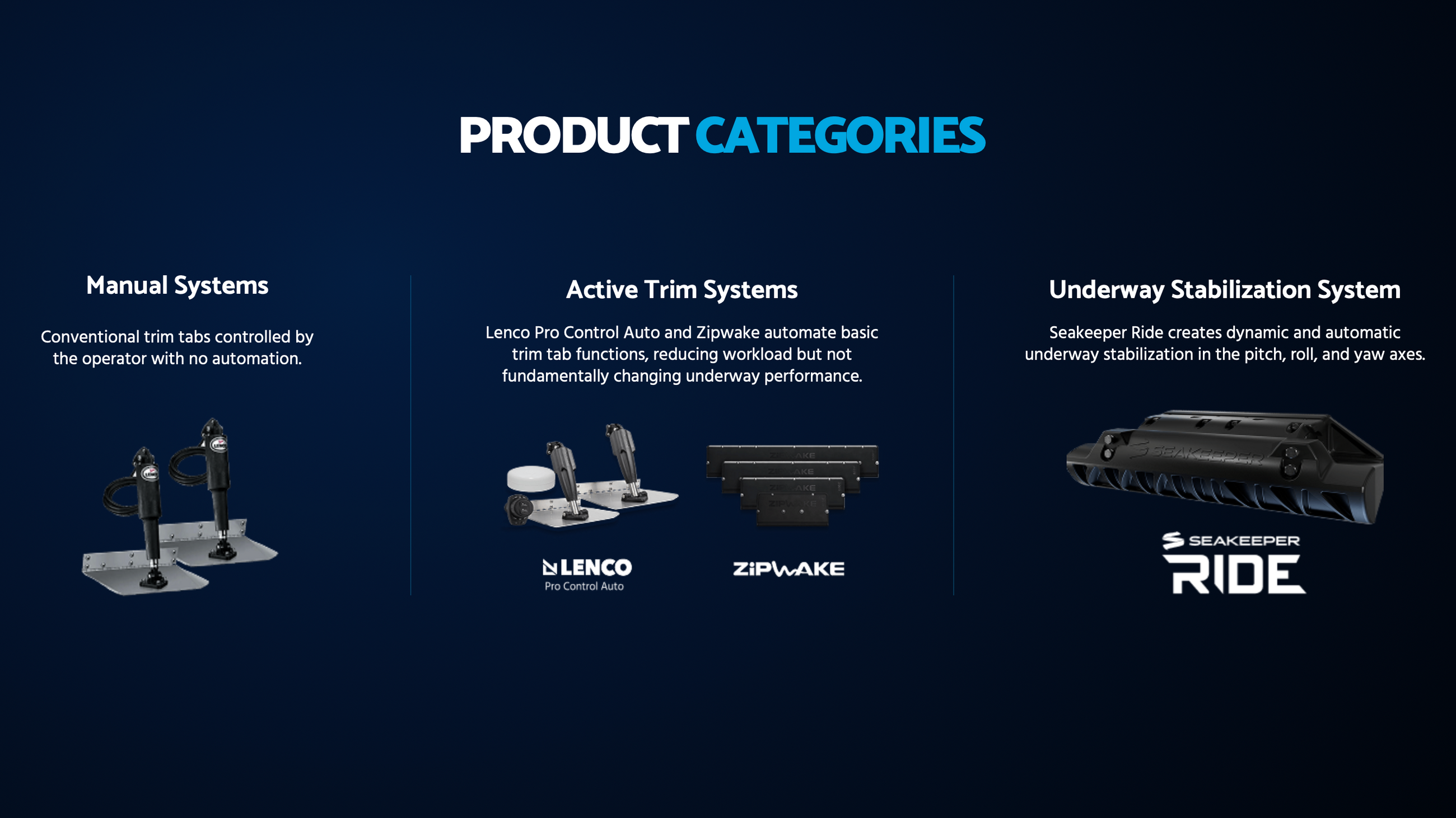 Another key difference: Ride cancels yaw — the twisting motion of a boat. Competing systems sometimes introduce yaw while fighting roll, but Ride keeps the boat balanced on all three axes.