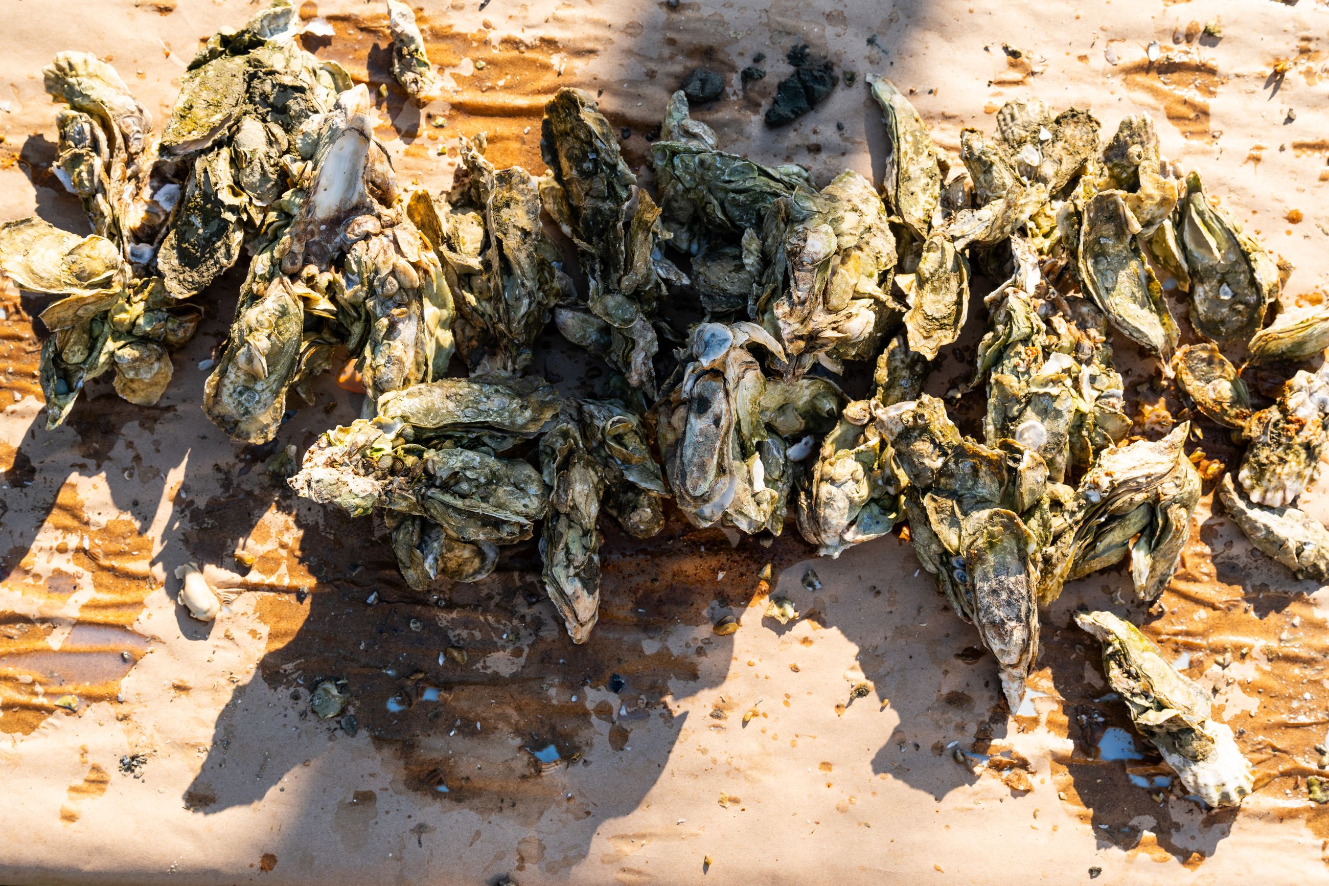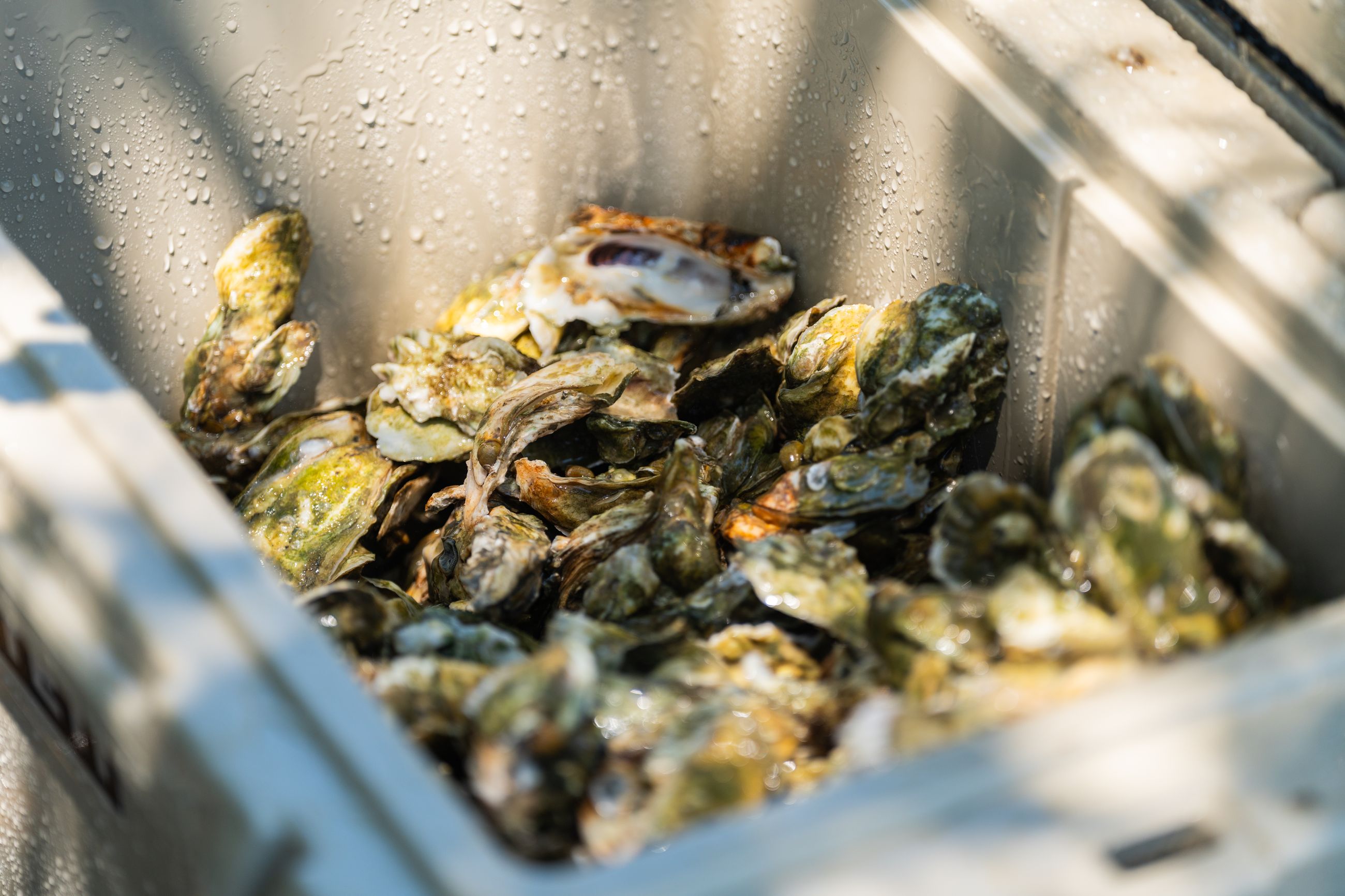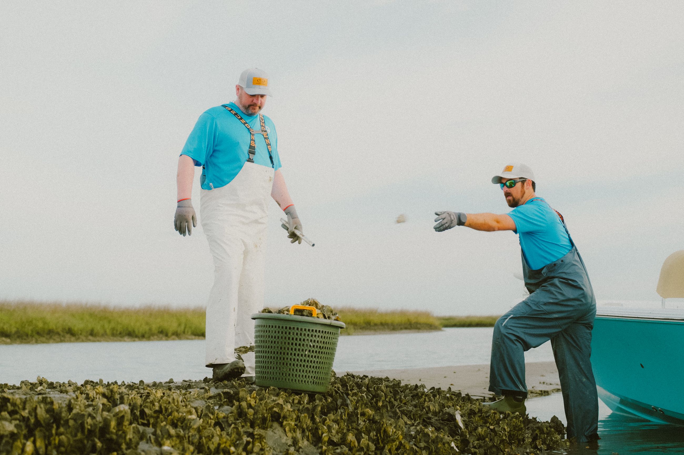 Lastly, we couldn't forget that staple golden brown cluster found on the muddy low-tide banks of the Lowcountry. Before everyone arrived for our Goat Island feast Eric and Captain Jim took off into the marsh to locate and harvest a bushel of fresh oyster clusters from the pluff mud in the Masters 227. These oysters clusters are great and what makes them even better is knowing you went out and picked them yourselves. They're simple, salty, and meant to be eaten standing up with a shucking knife in one hand and a drink in the other.