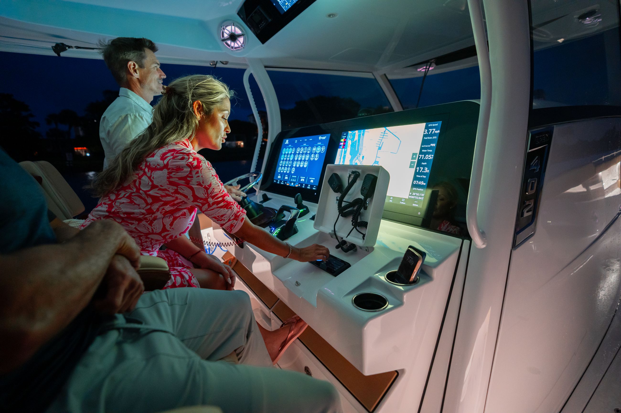 This is not a helm that feels crowded or overwhelming. It is a space designed around clarity, control and comfort. Everything you need is right in front of you, laid out in a way that feels natural whether you are making a long offshore run or easing into a tight dock.