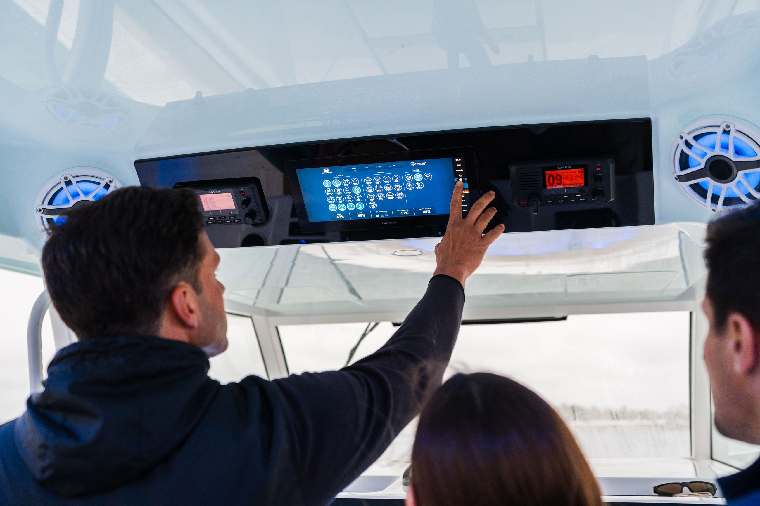 With the Sportsman digital switching system, you have control of the entire boat at your fingertips. Lights, pumps and onboard systems are all accessible through a clean, intuitive interface. There is no searching for switches or second guessing where something is. It is all right there, organized and easy to use.